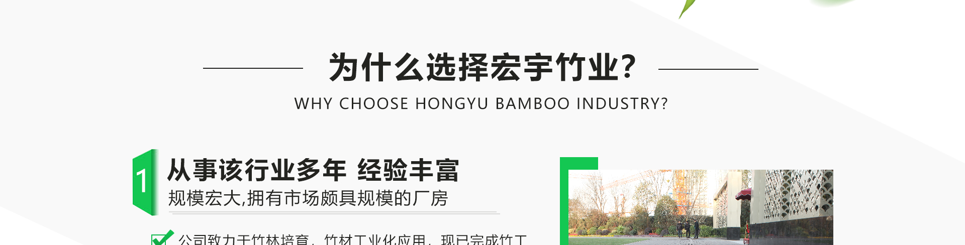 宣城宏宇竹業(yè)有限公司位于“華夏毛竹首鎮(zhèn)”的安徽省宣城市涇縣蔡村鎮(zhèn),公司致力于竹材工業(yè)化應用與研發(fā),已完成竹工業(yè)化利用第五代技術(shù)-竹基纖維復合材技術(shù)應用研發(fā),并獲得2015年度國家科技進步獎二等獎。公司擁有行業(yè)幅面3850*1320mm的5400噸壓力的20層熱壓機,可以直接壓制3850*1180*52的坯板,具備年產(chǎn)10000立方米的生產(chǎn)能力。宏宇竹業(yè)以“領(lǐng)導竹材恒久價值”為己任,以匠心的工藝,銳意進取的管理團隊打造一個產(chǎn)品多樣化、市場多元化的科技型企業(yè)。公司從成立之初一直重視品牌建設,公司注冊商標“箐剛“竹,致力打造戶外竹材優(yōu)異品牌,讓宏宇竹業(yè)深入每一個消費者的心。